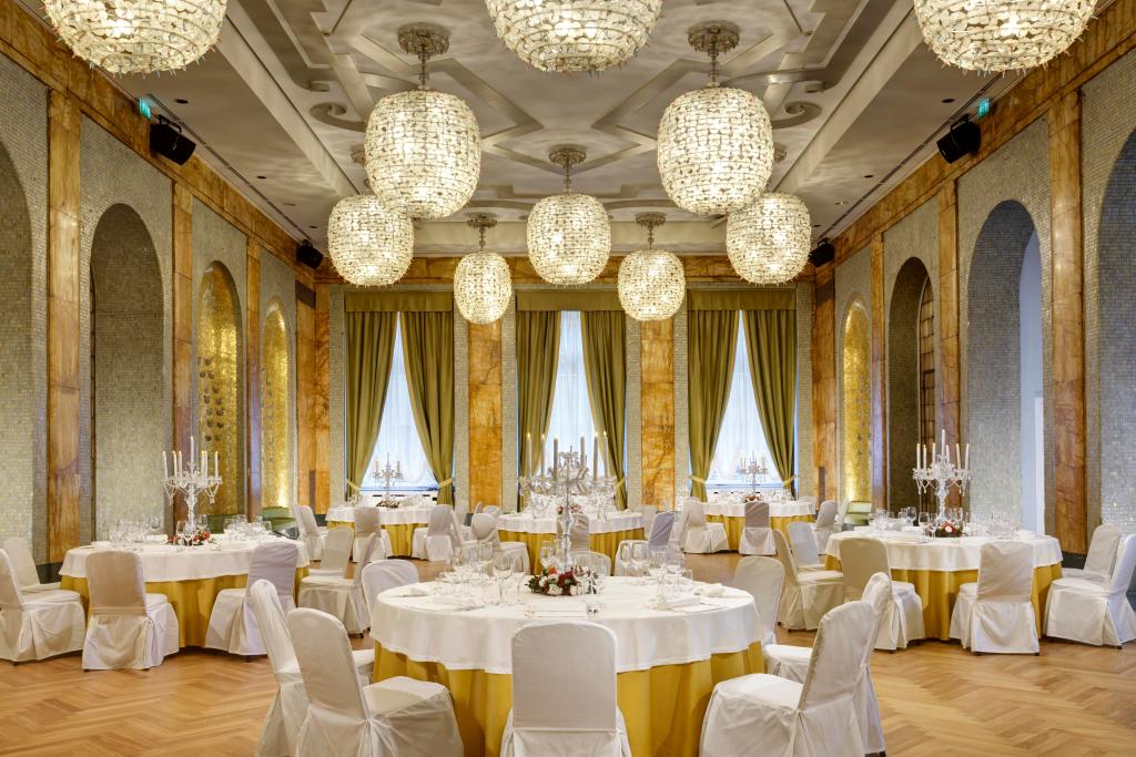 Complete with an elegant spa and wellness centre, this unique location boasts dining and event options, and promises its guests comfortable and stylish rooms and suites with exceptional views over the city and the surrounding nature. The jewel is certainly the renowned Salone delle Feste, with a dedicated entrance, featuring mosaics by Venini and precious Murano glass chandeliers.